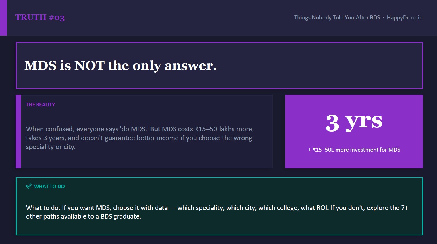 “HappyDr gave me clarity when I was completely confused after BDS. The mentor sessions helped me understand my options instead of blindly following the crowd.”